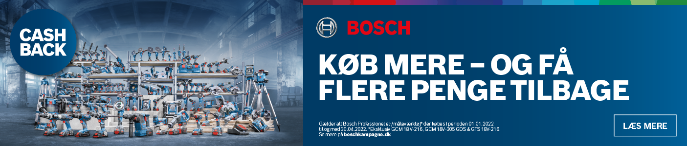 Bosch Professional Cash Back-kampagnen løber i perioden 01.01.2022 – 30.04.22 – sidste dag for registrering af produkter i kampagnen er 31.05.2022.