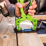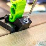 3. Sørg for at batteriet på skruemaskinen ikke står på terrassebrættet, ved at vinkle skruemaskinen. Derved minskes risikoen for fejlmontering samt skader på monteringsværktøjet og bits.