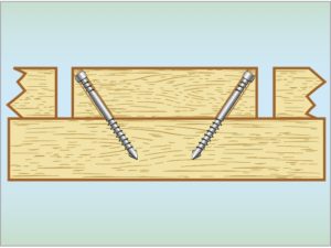 Ved samling af brædder, monter en ekstra understøtning under samlingen for at forhindre at terrasseskruer monteres for tæt på endetræet.