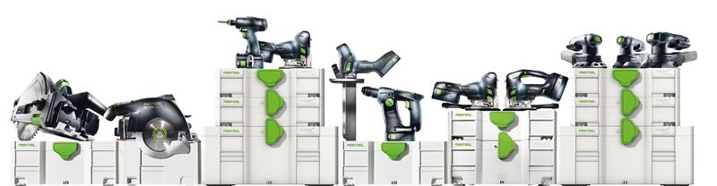 Festool 18 volt akku maskiner er også en del af Festool systemet. Uanset hvilken Festool akku maskine i 18 volt klassen du vælger at starte med, hvad enten det er en akku skruemaskine, akku borehammer, akku slagbore-/skruemaskine, akku stiksav eller akku rundsav, så er det del af et gennemtænkt samlet Festool system. Med værktøj, som løser alle opgaver inden for savning, boring og skruning med bedste resultat.