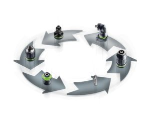 Suverænt alsidige. Takket være Festool FastFix systemet udskiftes Festool CENTROTEC værktøjspatronen og forsatserne lynhurtigt. Klare eksakt samme belastning som standard borepatronen.