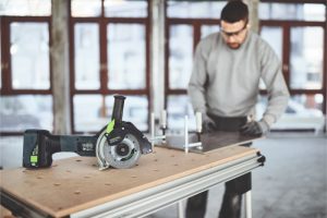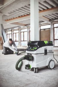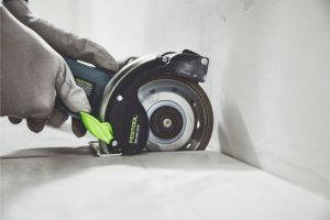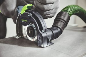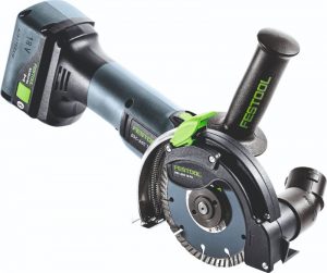 Maskinen er den første akku diamantskærer fra Festool og har en speciel udsugningskappe. Kappen sørger for at 95% af støvet bliver opsuget af en tilkoblet støvsuger, selv når du skærer i mineralske materialer som gips, beton, sten osv.