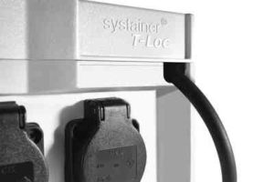 Festool SYS-PowerHub kan også forbindes med andre Systainere, når den er lukket og tilsluttet til stikkontakten ved hjælp af de to kabeludgange.