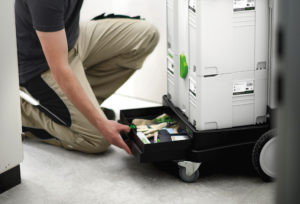 Kender du det, at man skal ud til en opgave, værktøj skal pakkes, slæbes hen til arbejdsstedet… tilbage til bilen, hente tasken med håndværktøjet, systainerkassen med forskellige skruer, bits og andet småt… tilbage til bilen hente en Festool støvsuger, forskellige dele og materialer skal også med. Man er jo helt træt inden man overhovedet er kommet i gang. Hmmm!
