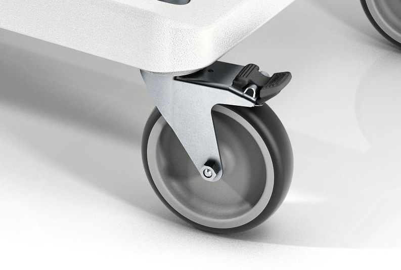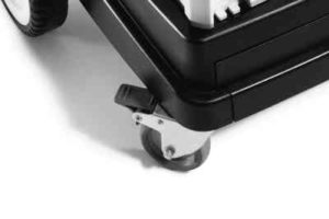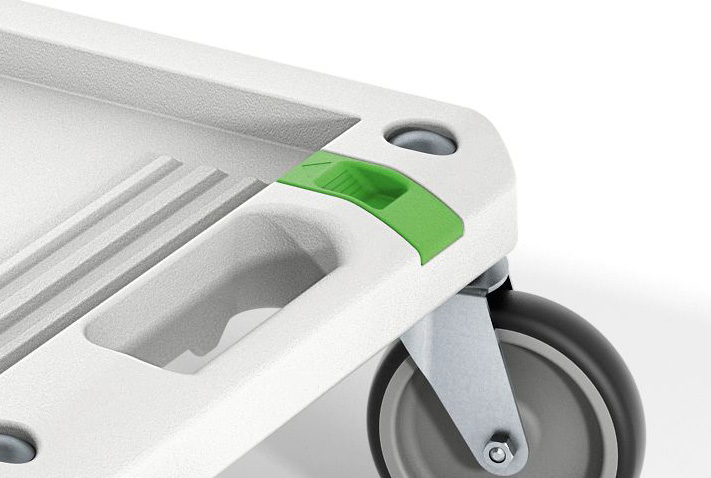 Fronthjulene kan drejes i alle retninger 360°. Således kan Festool SYS-Roll køres og manøreres endnu lettere. Fronthjulene kan desuden låses, med hver sin bremse.