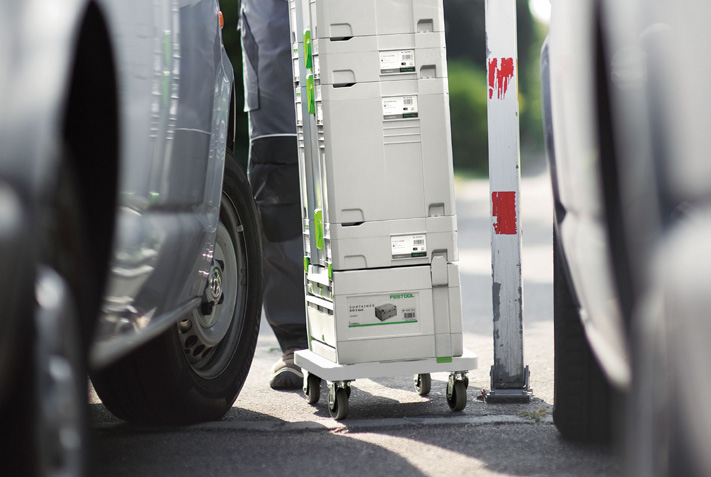 Med Festool SYS-Cart kan SYSTAINERE og andre værktøjskasser indtil 100 kg køre – med minimalt kraftforbrug.