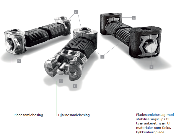 Detaljeret beskrivelse af DOMINO hjørne- og pladesamlebeslag