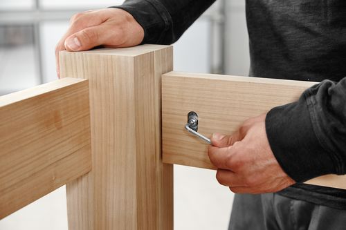 Festool DOMINO fleksible hjørnesamlebeslag bruges til samlemøbler, f.eks. senge, borde osv.