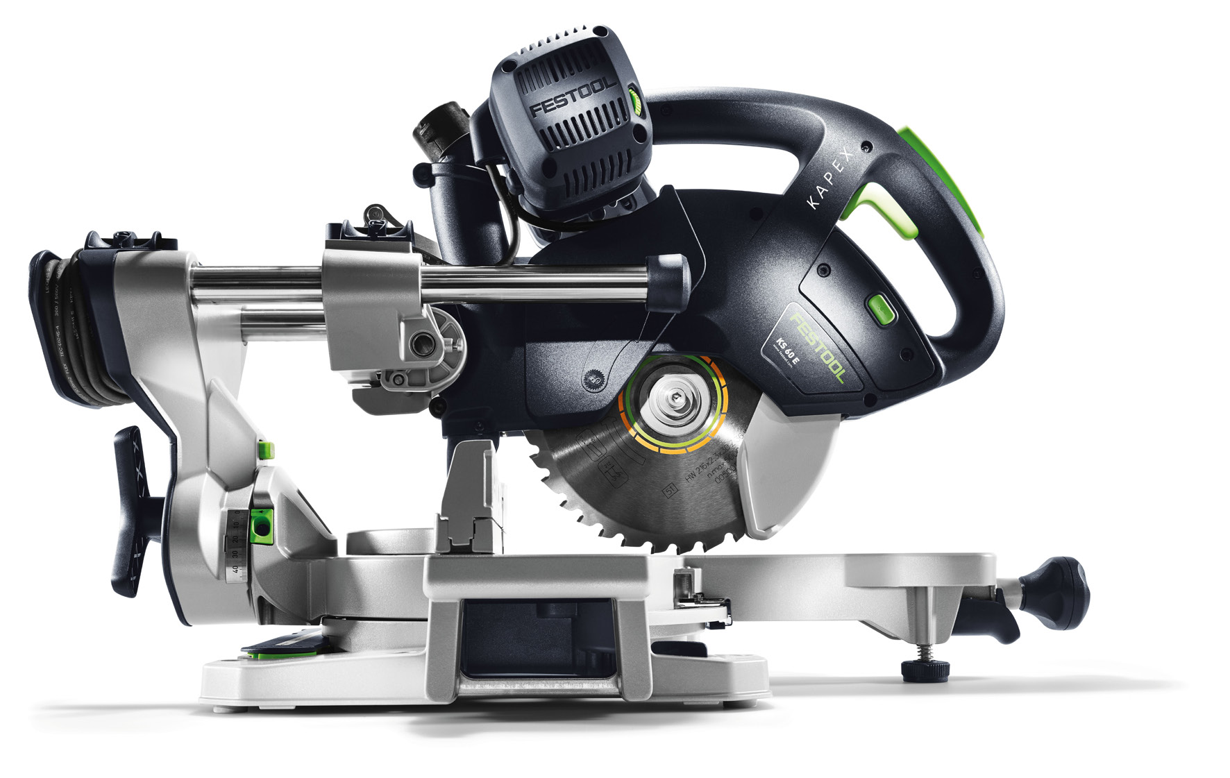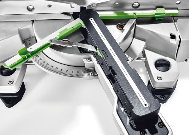 Uovertruffen præcision: Festool KAPEX konstruktion på KS 60 hvor savhovedet glider på dobbelt søjleføring, giver dig en uovertruffen præcision i alle hældnings-/geringsvinkler.
