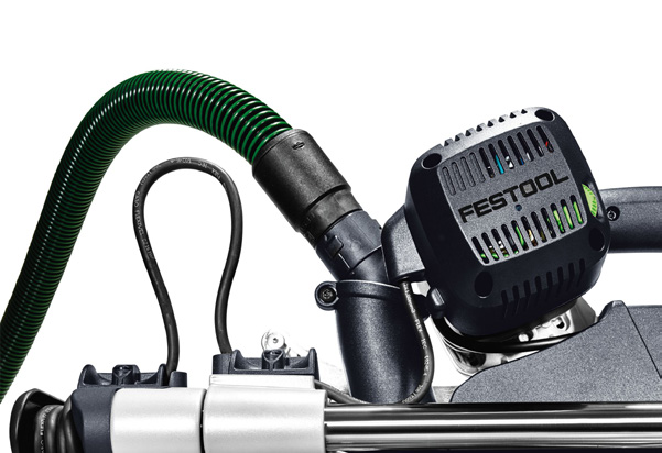 For ren luft og sundt arbejdsmiljø: I kombination med en Festool støvsuger bortsuger udsugningsanordningen støvet der, hvor det opstår.