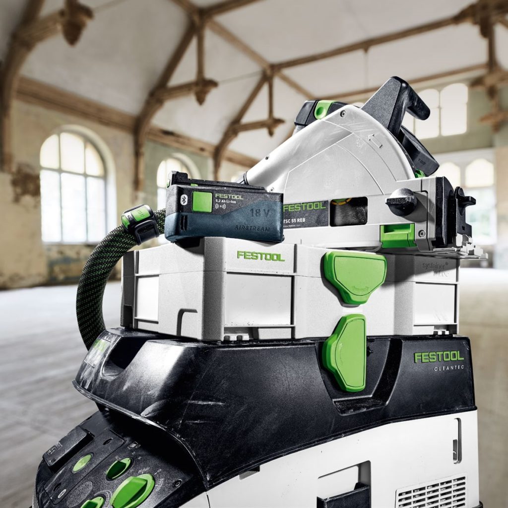 Kombinationen af Festool Bluetooth modtagemodul på din støvsuger og Bluetooth fjernbetjening på støvsugerslangen sparer dig for at gå hen til støvsugeren. Støvudsugningen kan startes med fjernbetjeningen direkte på slangen. Ideelt til mindre rengøringsarbejde indimellem. Og det er ikke alt – med Festool Bluetooth batteriet starter modulet også udsugningen på støvsugeren, når du tænder for akku værktøjet. Så når du arbejder med Festools 18V akku maskiner, får du glæde af hele Festool støvfri-systemet.