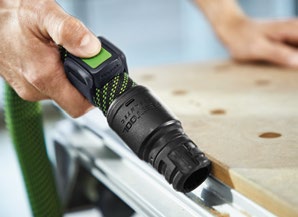Smart ekstrafordel: Start- og slutstykkerne kan forbindes med hinanden med Festool's CLEANTEC udsugningsmuffe – enten for at sikre en ren transport eller forlænge støvsugerslangen.