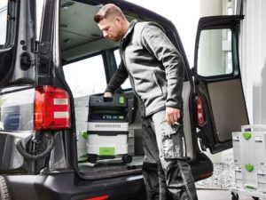 Ideel til montering takket være kompakte mål, ergonomisk konstruktion, robust chassis og jævn arbejdsflade. Kan forbindes med alle Festool SYSTAINERE via SYS-Dock.