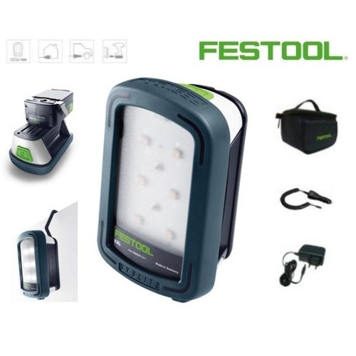 Med Festool arbejdslampe SYSLITE er du fri for kabler, kompakt design, altid klar til brug. Arbejdslampen er lavet i brudsikkert hus af stød- og slagfast aluminium.
