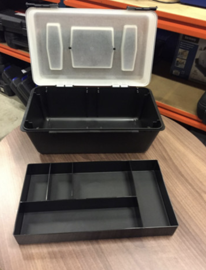 Denne værktøjskasse i plast er fuld valuta for pengene. Værktøjskassen er lille og praktisk, er enormt billig, og giver dig mulighed for at opbevare både værktøj og smådele.
