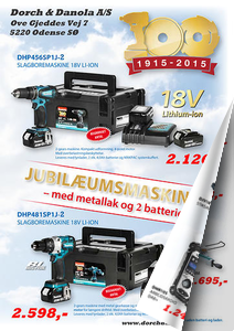 Dorch & Danola fejrer at Makita har 100 års jubilæum i år og vi er derfor i gavehumør, vi har nedsat prisen på udvalgte maskiner fra Makita. Se vores spændende jubilæumstilbud på Makita i tilbudsavisen herunder.