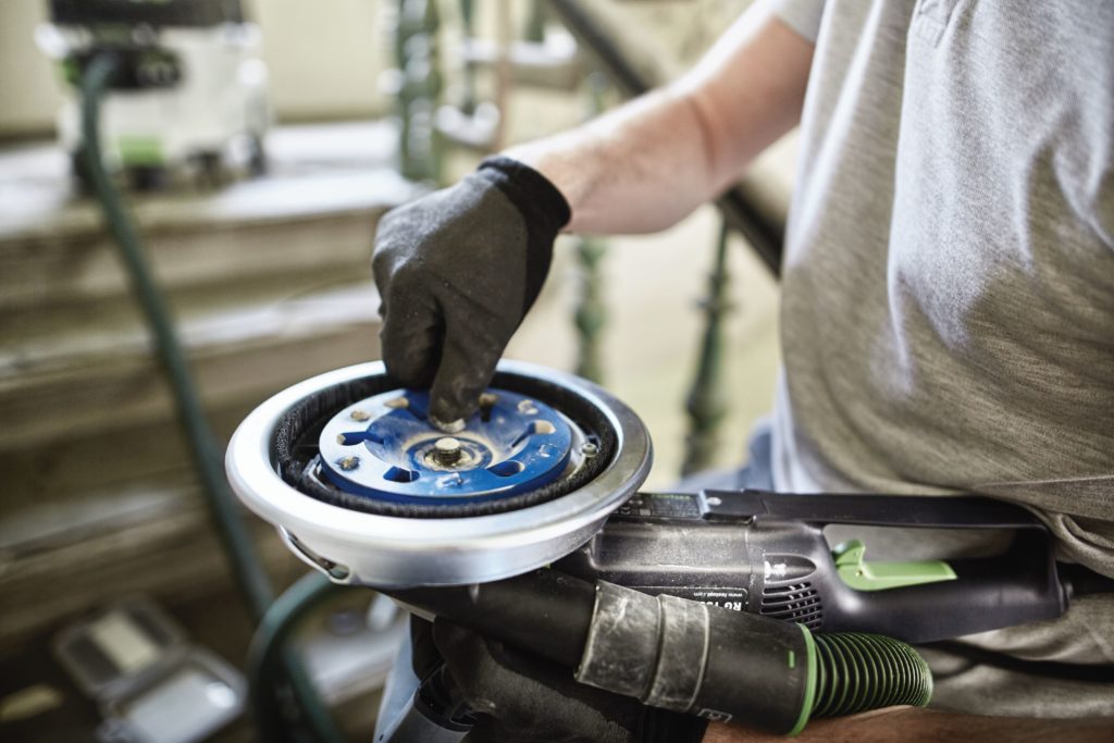 Ved hjælp af den patenterede udsugningsspiral opnår Festool RG 130 E sammen med Festool støvsugeren CTM 36 E AC HD perfekt udsugning og garanterer støvfrit arbejde.