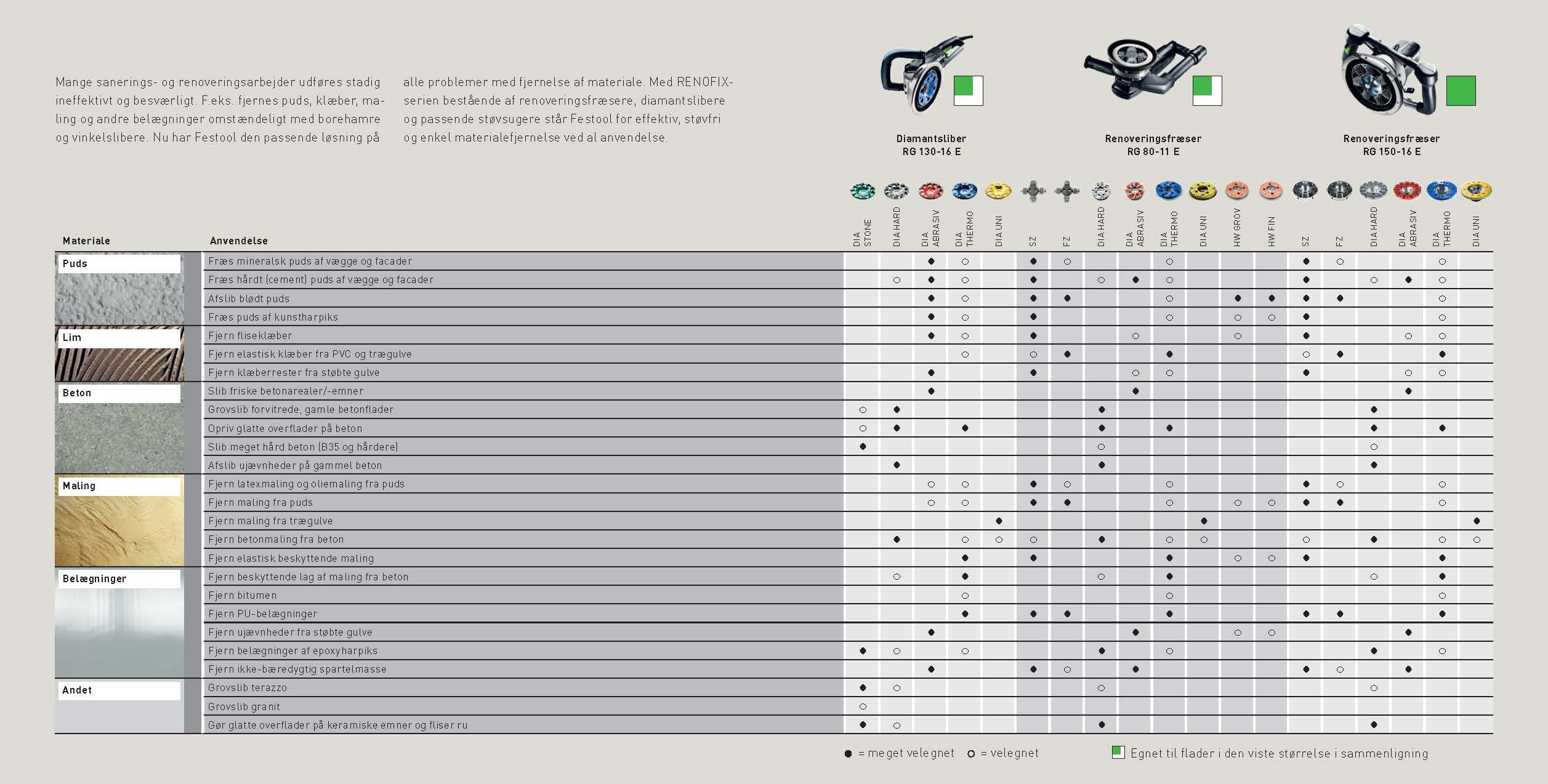 Festool RENOFIX oversigt over anvendelser