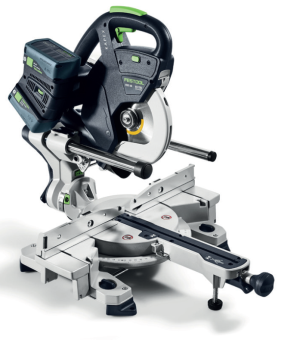 ... Sådan er det, når du arbejder med den nye akku kap-/geringssav KSC 60 fra Festool, for her får du fuld power og maksimal udholdenhed, så du kan blive ved hele dagen. Det er muligt, fordi saven har den nyeste generation af den kulfri EC-TEC-motor og dobbeltbatterisystem.