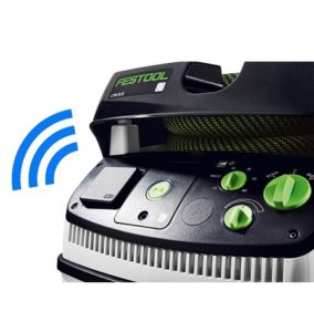 Festool CLEANTEC støvsugere kan udstyres individuelt med Bluetooth modulet. De kan så betjenes med fjernbetjeningen på støvsugerslangen og starter automatisk, når Festool akku maskiner med Bluetooth batterier startes.